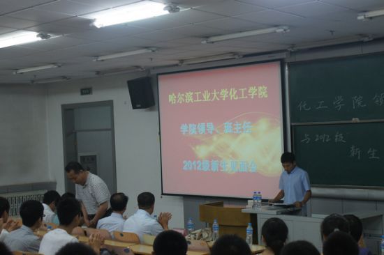 2012年8月29日上午9时,化工学院在二区主楼B21教室召开院系领导与2012级本科生新生见面会。经理黄玉东、党委书记姜兆华,副经理杨春晖、孟令辉,党委副书记岳会敏,各系主任、副主任、2012级新生班主任等参加了本次大会。会议由本科生辅导员贺金秋主持。经理黄玉东教授首先代表全院师生对新同学的到来表示热烈欢迎,对同学们考入哈工大化工学院表示衷心的祝贺。黄经理从学院团队建设、团队队伍、科学研究、国家化办学、员工工作等方面介绍了学院的基本情况,并结合自身经历鼓励同学们在今后的学习生活中要树立远大的人生目标,将个人发展与社会需求紧密结合起来,要脚踏实地、重视基础,要拓展国际化视野,要注重自身创新能力培养,努力把自己成为具有国际竞争力的拔尖创新人才。副经理孟令辉教授就本科生培养方案、专业分班、转专业、保研等方面的工作安排和政策进行了介绍,并从学风、班风和考风纪律方面对新生同学提出了希望。他希望同学们要明确老员工涯规划,树立明确的目标,要勤奋努力,刻苦学习,要加强自我管理,顺利度过老员工活。见面会后,2012级新生分别到分会场听取了各专业专业介绍,各系主任、副主任和新生班主任回答了同学们对专业、学习、生活等方面的问题,各小班分别召开了新生第一次小班班会。