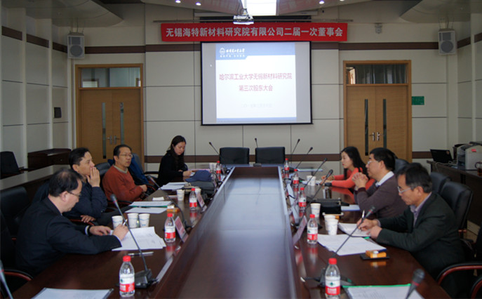 3月18日,哈工大无锡新材料研究院第三次股东大会暨二届一次董事会在活动中心320召开,无锡惠山工业转型集聚区管委会主任刘国胜、副主任奚晓敏、投资发展部部长刘羽、办公室主任席丹,哈工大资产投资经营有限公司总经理杨庆海、副总经理程东明、化工学院经理黄玉东、党委书记岳会敏,研究院董事长魏群、常务副经理白永平、办公室主任殷晓芬等参加了会议。 刘国胜主任主持召开了第三次股东大会。会议主要涉及推荐新任董事、选举董事长及商议股权结构调整事宜。经选举,魏群同志当选新任董事长,股东大会就研究院股份结构调整、未来资金整合、未来发展方向以及双方合作协议条款调整等方面进行了深入探讨并达成一致意见。 魏群董事长主持召开了二届一次董事会。研究院常务副经理白永平向董事会汇报了研究院2014年度工作总结及2015年工作规划,董事殷晓芬代监事赵静霞作了2014年财务工作报告,各位参会董事对研究院2014年度工作总结及财务工作报告、2015年工作计划进行了深入讨论。会上,黄玉东经理代表学院感谢学校和惠山区地方政府为研究院发展提供的支持和帮助,感谢研究院全体同志一年来的努力工作,下一阶段研究院将进一步理顺内部管理机制,加强队伍建设和平台建设,强化规划顶层设计,通力校地双方的努力,为公司长远发展奠定坚实基础。魏群董事长表示,2014年研究院完成了大量基础性工作,面向未来,公司将在技术服务、企业孵化、行业标准资质申请等方面做出更多的努力。杨庆海总经理代表学校讲话,他希望研究院在新材料领域备受重视的新形势下,充分利用各方面政策,建立激励机制,为公司又快又好地发展提供制度性保障。刘国胜主任对公司的未来发展寄予希望,他希望校地双方继续凝聚合力,为无锡海特新材料研究院有限公司的发展提供更广阔的空间。