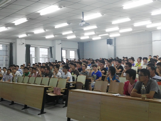 2016年8月21日上午8点,bwin2016级本科生新生与院领导见面会在二区主楼B11举行,bwin经理黄玉东、党委书记岳会敏,党委副书记张旭、辅导员赵越及2016级全体新生和部分员工家长参加会议,会议由基础学部辅导员刘文超主持。